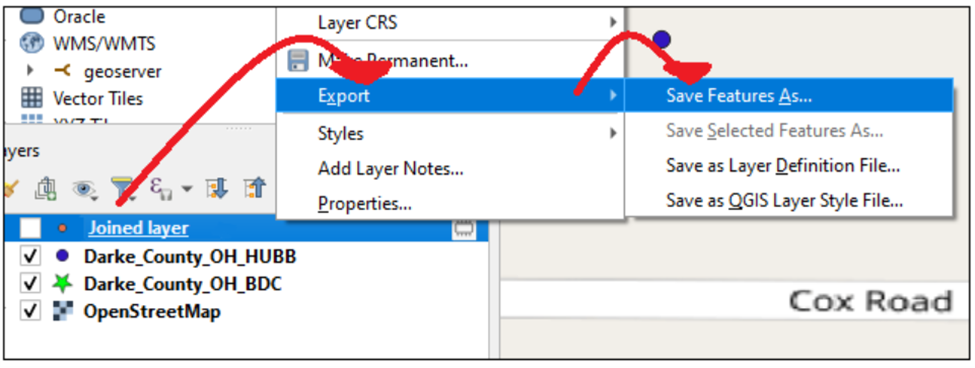After the tool has finished processing, you will see a Joined layer table in your Layers window, at the bottom left of your screen. This is shown below (the other layers shown below, Darke County, etc., will be different for you).