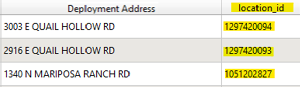 The resulting table, shown below, will display the BDC ID as “Location ID”. This is the association between HUBB points and BSL Location IDs.